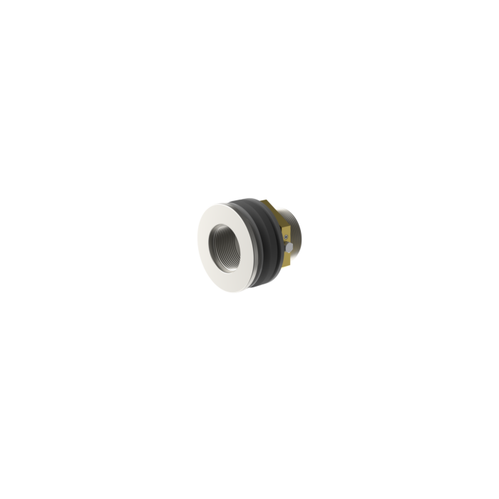 Grundelement aus V4A (AISI 316) bestehend aus Universalschlussteil, Dichtung, Schrauben, Blende, Gegenmutter 2″ und Dichtscheibe PVC.