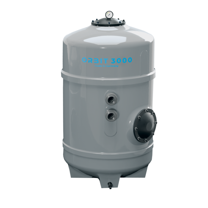 Filterbehälter GFK ORBIT 3000 D600 RAL 7046 mit Düsenkreuz 2"